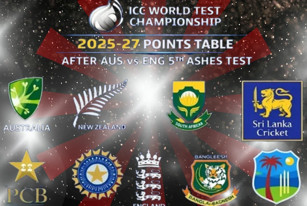 नई दिल्ली : पूर्व चैंपियन ऑस्ट्रेलिया ने गुरुवार (8 जनवरी) को सिडनी क्रिकेट ग्राउंड में संपन्न एशेज 2025-26 सीरीज के अंतिम टेस्ट में इंग्लैंड को 4-1 से पराजित कर आईसीसी वर्ल्ड टेस्ट चैंपियनशिप (WTC) रैंकिंग में अपनी शीर्ष स्थिति और मजबूत कर ली है। ऑस्ट्रेलिया ने इस निर्णायक मुकाबले में इंग्लैंड को 5 विकेट से मात दी। वहीं, WTC रैंकिंग में भारत और इंग्लैंड की स्थिति निराशाजनक बनी हुई है, और दोनों टीमें पाकिस्तान से भी पीछे खिसक गई हैं।