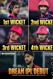 नई दिल्ली : इंडियन प्रीमियर लीग में आज एक ऐसी कहानी लिखी गई, जिसे सालों तक याद रखा जाएगा। 24 साल के युवा तेज गेंदबाज प्रफुल हिंगे ने अपने डेब्यू मैच में ही इतिहास रच दिया। पहले ही ओवर में 3 विकेट,कुल 2 ओवर में 4 विकेट आईपीएल इतिहास में पहले ओवर में 3 विकेट लेने वाले पहले गेंदबाज उन्होंने बड़े बल्लेबाज़ों जैसे वैभव सूर्यवंशी,ध्रुव जुरेल और कप्तान रियान पराग को आउट कर मैच का रुख पलट दिया।