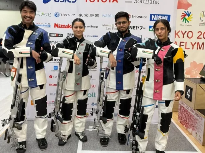 नई दिल्ली : टोक्यो में चल रहे 25वें समर डेफ़लिंपिक्स में भारतीय निशानेबाज़ों ने शानदार प्रदर्शन जारी रखते हुए 10 मीटर एयर राइफल मिश्रित टीम स्पर्धा में स्वर्ण और कांस्य, दोनों पदक अपने नाम किए। धनुष श्रीकांत और महित संधू की जोड़ी ने दक्षिण कोरियाई जोड़ी जियोन डैन और किम ऊरिम को फाइनल में हराकर स्वर्ण पदक जीता, जबकि मोहम्मद मुरतज़ा वानिया और कोमल मिलिंद वाघमारे ने यूक्रेन की वियोलेटा लाइकोवा और ओलेक्ज़ेंडर कोस्तिक की जोड़ी को मात देते हुए कांस्य पदक जीता।