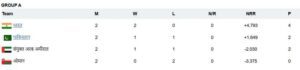 एशिया कप ग्रुप ए अंक तालिका