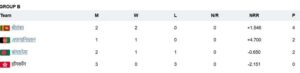 एशिया कप ग्रुप बी अंक तालिका