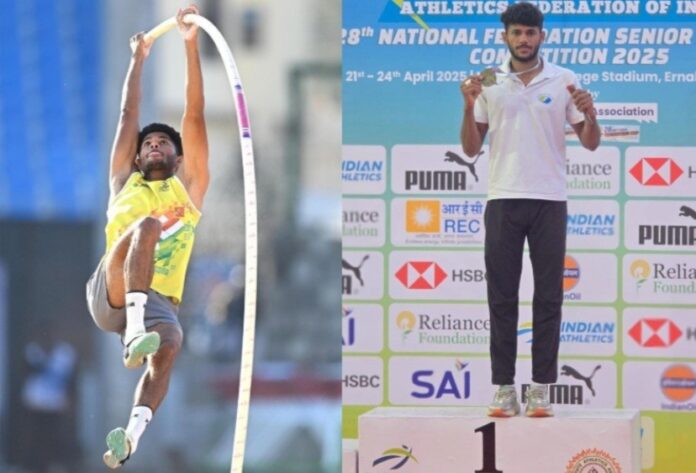 अपना ही राष्ट्रीय रिकॉर्ड तोड़कर म.प्र. अकादमी के पोल वाल्टर देव मीणा ने जीता स्वर्ण पदक
