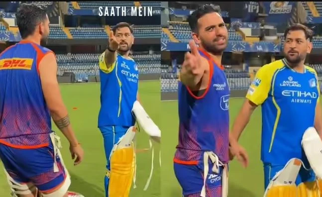 नई दिल्ली : इंडियन प्रीमियर लीग 2026 (IPL 2026) में गुरुवार (23 अप्रैल) को मुंबई इंडियंस और चेन्नई सुपर किंग्स के बीच मुकाबला खेला जाएगा। इस हाई-वोल्टेज मैच से पहले मंगलवार (21 अप्रैल) को अभ्यास सत्र के दौरान चेन्नई सुपर किंग्स के पूर्व कप्तान महेंद्र सिंह धोनी से मिलने मुंबई इंडियंस के तेज गेंदबाज दीपक चाहर पहुंचे। दीपक पहले चेन्नई सुपर किंग्स का हिस्सा रह चुके हैं और उनका धोनी के साथ भाई जैसा रिश्ता है। दोनों के बीच खास बॉन्डिंग है और वे एक-दूसरे के साथ मजाक करने का कोई मौका नहीं छोड़ते।