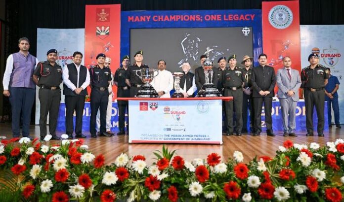 जमशेदपुर: भारत का स्टील सिटी जमशेदपुर एक बार फिर एशिया के सबसे पुराने फुटबॉल टूर्नामेंट, 134वें इंडियनऑयल डूरंड कप की मेज़बानी करने के लिए तैयार है। लगातार दूसरे वर्ष इस प्रतिष्ठित प्रतियोगिता का आयोजन शहर में किया जा रहा है। डूरंड कप की तीनों ट्रॉफियों को एक्सएलआरई ऑडिटोरियम में भव्य रूप से प्रदर्शित किया गया, जहां झारखंड के माननीय राज्यपाल संतोष गंगवार मुख्य अतिथि के रूप में उपस्थित रहे।