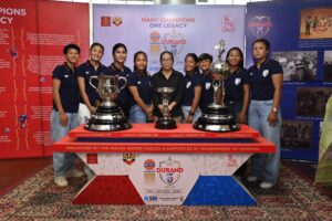 इम्फाल: एशिया के सबसे पुराने और प्रतिष्ठित फुटबॉल टूर्नामेंट 134वें इंडियनऑयल डूरंड कप की ट्रॉफियों का आज इम्फाल में भव्य स्वागत किया गया। दो साल के अंतराल के बाद, यह ऐतिहासिक टूर्नामेंट एक बार फिर मणिपुर की राजधानी लौटा है। इस अवसर पर आयोजित ट्रॉफी टूर के तहत डूरंड कप की तीनों चमचमाती ट्रॉफियों – मूल डूरंड कप, रोलिंग शिमला ट्रॉफी (जो वर्ष 1904 में शिमला के नागरिकों द्वारा भेंट की गई थी), और प्रेसिडेंट्स कप (जिसे विजेता टीम स्थायी रूप से रखती है) – को सिटी कन्वेंशन सेंटर, इम्फाल में प्रदर्शित किया गया।