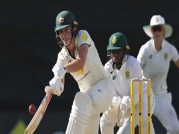 इस मुकाबले में साउथ अफ्रीका की टीम पहले बल्लेबाजी करते हुए महज 76 रनों पर ढेर हो गई थी। ऑस्ट्रेलिया की डार्सी ब्राउन ने 5 विकेट निकाले थे। इसके बाद ऑस्ट्रेलिया की टीम पहली पारी में बल्लेबाजी करने उतरी। एनाबेल सदरलैंड की 210 और कप्तान हीली मैथ्यूज 99 रनों की पारी की बदौलत मेजबान टीम 9 विकेट खोकर 575 रन बनाने में सफल रही और पारी घोषित कर दी। ऑस्ट्रेलिया के लिए 78 रन बेथ मूनी और 65 रन एश गार्डनर ने बनाए। साउथ अफ्रीका की ओर से 3-3 विकेट मसाबता कलास और क्लो ट्रायोन ने चटकाए।
