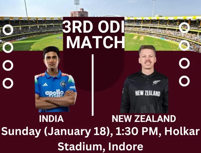 नई दिल्ली : भारत और न्यूजीलैंड के बीच तीन मैचों की वनडे सीरीज का आखिरी और निर्णायक मुकाबला रविवार, 18 जनवरी को खेला जाएगा। यह मैच इंदौर के होलकर स्टेडियम में दोपहर 1.30 बजे से शुरू होगा, जबकि टॉस दोपहर 1.00 बजे होने की संभावना है। न्यूजीलैंड ने दूसरे मैच में शानदार प्रदर्शन करते हुए सीरीज को 1-1 से बराबर कर दिया था। दूसरे मुकाबले में कीवी टीम ने हर विभाग में भारत को मात दी थी, और अब दोनों टीमों के पास तीसरे मैच में जीत हासिल कर सीरीज अपने नाम करने का सुनहरा अवसर है।