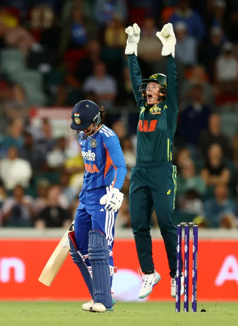 ऑस्ट्रेलिया के लिए जॉर्जिया वॉल ने 57 गेंदों में 88 रन की बेहतरीन पारी खेली, जिसमें 11 चौके और एक छक्का शामिल रहा। बेथ मूनी ने 46 रन बनाए। भारत की ओर से अरुंधति रेड्डी ने 2 विकेट झटके, जबकि रेणुका ठाकुर को 1 सफलता मिली। दो ऑस्ट्रेलियाई बल्लेबाज़ रन-आउट भी हुए। 164 रन के लक्ष्य का पीछा करने उतरी भारतीय टीम ने तेज शुरुआत की। शेफाली वर्मा और स्मृति मंधाना ने पावरप्ले में बिना नुकसान 54 रन जोड़ दिए। हालांकि 7वें ओवर में शेफाली के आउट होते ही विकेट गिरने का सिलसिला शुरू हो गया और 10 ओवर में स्कोर 71/3 हो गया।इसके बाद कप्तान हरमनप्रीत कौर और ऋचा घोष ने चौथे विकेट के लिए 55 रन की अहम साझेदारी की, जिससे भारत मुकाबले में बना रहा। लेकिन जैसे ही यह साझेदारी टूटी, भारतीय पारी पूरी तरह लड़खड़ा गई और टीम ने अगले 7 रन के भीतर 6 विकेट गंवा दिए।
