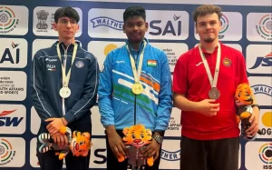 नई दिल्ली: भारत के 16 वर्षीय जोनाथन गेविन एंटनी ने डॉ. कर्णी सिंह शूटिंग रेंज में जारी आईएसएसएफ जूनियर वर्ल्ड कप राइफल/पिस्टल/शॉटगन नई दिल्ली 2025 के दूसरे दिन शानदार प्रदर्शन कर सबका ध्यान अपनी ओर खींच लिया। युवा भारतीय ने पुरुषों की 10 मीटर एयर पिस्टल स्पर्धा में खिताब अपने नाम किया। एंटनी, जिन्होंने क्वालिफिकेशन में 586-19x के स्कोर से शीर्ष स्थान हासिल किया था, ने फाइनल में भी अपना दमखम बरकरार रखते हुए 24 में से 21 शॉट 10 में मारे और 8.5 अंकों के बड़े अंतर से स्वर्ण जीता।