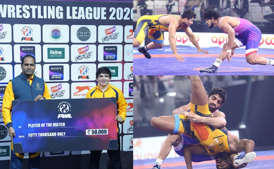 प्रो रेसलिंग लीग के सभी मुकाबलों का सीधा प्रसारण सोनी स्पोर्ट्स टेन 4 और टेन 5 पर किया जा रहा है, जबकि लाइव स्ट्रीमिंग सोनी लिव पर उपलब्ध है। महाराष्ट्र केसरी ने शुरुआत से ही मुकाबले पर अपना दबदबा बना लिया। महिलाओं के 62 किग्रा वर्ग के शुरुआती मुकाबले में डुडोवा बिल्याना झिवकोवा ने शुरुआती टेकडाउन गंवाने के बावजूद शानदार वापसी करते हुए सारिका मलिक को 11–2 से हराया। इसके बाद पुरुषों के 74 किग्रा वर्ग में यश ने दूसरे पीरियड में आक्रामक खेल दिखाते हुए नवीन मलिक को 13–5 से मात दी।