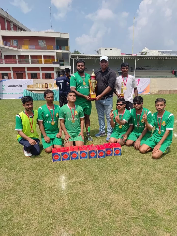 (NST News) भोपाल. नॉर्थ सेंट्रल मिनी जोनल फुटबॉल टूर्नामेंट में मध्य प्रदेश ने बेहतरीन खेल दिखाते हुए मेजबान पंजाब को फाइनल में 2-1 से हराकर चैंपियनशिप जीत ली। ग्वालियर में पिछले दो महीने से लगातार अभ्यास कर रही एमपी पुरुष ब्लाइंड फुटबॉल टीम ने इस जीत से प्रदेश का गौरव बढ़ाया। फाइनल मुकाबले में कप्तान फरदीन खान ने शानदार प्रदर्शन करते हुए दोनों गोल दागे और टीम को जीत दिलाई। इससे पहले इंडियन ब्लाइंड फुटबॉल प्रीमियर लीग में एमपी टीम तीसरे स्थान पर रह चुकी है, जबकि पिछले वर्ष एमपी वूमेन्स टीम ने खिताब जीतकर अपना दबदबा कायम किया था।