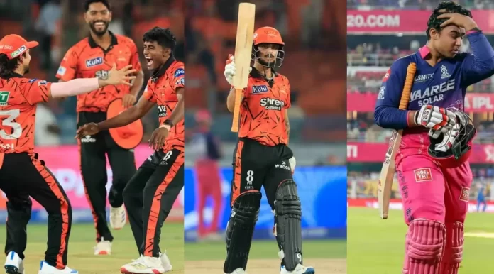 नई दिल्ली : सनराइजर्स हैदराबाद ने आईपीएल 2026 के 21वें मुकाबले में राजस्थान रॉयल्स को 57 रनों से हराकर बड़ा उलटफेर किया। 216 रनों के लक्ष्य का पीछा करते हुए राजस्थान की टीम 19 ओवर में 159 रन पर सिमट गई। इस जीत के साथ हैदराबाद ने अंकतालिका में लंबी छलांग लगाई और 7वें स्थान से सीधे चौथे स्थान पर पहुंच गई। वहीं लगातार चार मैच जीत चुकी राजस्थान को इस सीजन की पहली हार झेलनी पड़ी, हालांकि टीम अब भी नंबर 1 पर बनी हुई है, लेकिन उसका नेट रन रेट काफी गिर गया है।