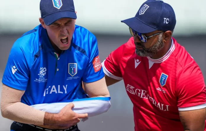 दरअसल, इटली के कप्तान वेन मैडसन गंभीर रूप से चोटिल हो गए हैं, जिसके चलते वह स्कॉटलैंड के खिलाफ इस मुकाबले में आगे हिस्सा नहीं ले पाएंगे। इटली ने टॉस जीतकर पहले गेंदबाजी का फैसला किया था। मैच के दौरान फील्डिंग करते समय वेन मैडसन ने गेंद रोकने के लिए शानदार डाइव लगाई, लेकिन इसी प्रयास में वह अपने बाएं कंधे के बल ज़ोर से गिर पड़े। गिरते ही वह दर्द में नजर आए, जिसके बाद तुरंत मैदान पर फिजियो को बुलाया गया। चोट गंभीर होने के कारण मैडसन को मैदान छोड़ना पड़ा, जिससे इटली की टीम को बड़ा झटका लगा।