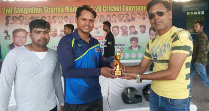 भोपाल। जी.एन.बुच खेल फेडरेशन एवं उत्कर्ष खेलकूद समिति के द्वारा ओल्ड कैम्पियन मैदान पर आयोजित द्वितीय गंगाधर शर्मा स्मृति टी-20 क्रिकेट टूर्नामेन्ट में आज के पहला मुकाबला एमएमजी इलेवन और नगर निगम भोपाल के बीच खेला गया। जिसमें टाॅस जीतकर पहले बल्लेबाजी करते हुये। एमएमजी इलेवन की टीम ने दीपक के 64, सुनील वर्मा और अभिषेक गिरी के 48-48 रनों के सहारे निर्धारित 20 ओवरों में 4 विकेट के नुकसान पर 189 रन बनाये।