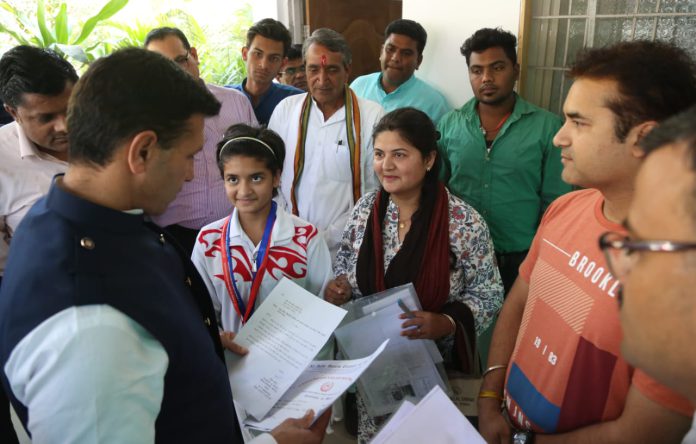 भोपाल। चेन्नई के जवाहरलाल नेहरू स्टेडियम में पिछले दिनों खेली गई छटवीं नेशनल डीफ जूनियर एवं सब जूनियर स्पोर्ट्स चैम्पियनशिप में एक-एक रजत और कांस्य पदक मध्य प्रदेश को दिलाने वाली भोपाल की प्रतिभावान मूक-बधिर बैडमिंटन खिलाड़ी गौरांशी शर्मा ने प्रदेश के खेल और युवा कल्याण मंत्री जीतू पटवारी से भेंट की। अपने मूक-बधिर माता-पिता के साथ खेल मंत्री के शासकीय आवास पर पहुंची बैडमिंटन खिलाड़ी गौरांशी शर्मा ने आवेदन पत्र के माध्यम से खेल मंत्री जीतू पटवारी को अपनी उपलब्धियों से अवगत कराया।