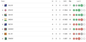 भारत को अपना अगला मुकाबला लगातार दो हार के बाद मजबूत इंग्लैंड टीम से 19 अक्टूबर को खेलना है। जबकि न्यूजीलैंड पाकिस्तान की टीम से 18 अक्टूबर को भिड़ेगी। ऐसे में अगर न्यूजीलैंड को जीत मिली तो वो भारत से आगे हो जाएगी। पाकिस्तान का हालिया प्रदर्शन देखते हुए कीवी टीम के लिए वो मुकाबला काफी आसान हो सकता है। जबकि भारत अगर इंग्लैंड से हारा तो वो और नीचे पांचवें स्थान पर खिसकते हुए टॉप 4 से बाहर हो जाएगा।यानि अब भारत के लिए टूर्नामेंट में बने रहने और सेमीफाइनल की दौड़ में खुद को मजबूत करने के लिए बचे हुए सभी मुकाबले जीतना बेहद जरूरी हो गया है। भारत ने टूर्नामेंट की शुरुआत शानदार तरीके से की थी, जब उसने श्रीलंका और पाकिस्तान को हराया था। लेकिन इसके बाद टीम को दक्षिण अफ्रीका और ऑस्ट्रेलिया के खिलाफ लगातार दो हार का सामना करना पड़ा। अब भारत के अगले दो मुकाबले इंग्लैंड और न्यूजीलैंड जैसी मजबूत टीमों से होने हैं, जो किसी भी लिहाज से आसान नहीं होंगे। ऐसे में भारत की सेमीफाइनल की राह अब पूरी तरह फिफ्टी-फिफ्टी के मौके पर टिकी हुई है।
