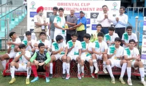नई दिल्ली: ओरिएंटल कप फुटबॉल टूर्नामेंट 2025 का समापन बेहद रोमांचक और भावनात्मक क्षणों के साथ हुआ, जहाँ दिल्ली पब्लिक स्कूल, आर.के. पुरम ने बालक वर्ग और गवर्नमेंट गर्ल्स सीनियर सेकेंडरी स्कूल, फरीदाबाद ने बालिका वर्ग में विजेता बनने का गौरव प्राप्त किया। डॉ. अंबेडकर स्टेडियम में हुए इन फाइनल मुकाबलों से पहले भारी बारिश ने आयोजकों की चिंता बढ़ा दी थी, लेकिन छात्र खिलाड़ियों की सुरक्षा और खेल भावना को ध्यान में रखते हुए, मैच कमिश्नर ने कोचों और आयोजकों के साथ परामर्श कर दोनों फाइनल मुकाबलों को पेनल्टी शूटआउट के जरिए संपन्न कराने का निर्णय लिया।