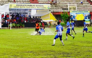 (NST News) भोपाल.  पीपुल्स पब्लिक स्कूल द्वारा आयोजित सीबीएसई नेशनल फुटबॉल प्रतियोगिता के दूसरे दिन ग्राउंड नंबर-2 पर अंडर-14 आयु वर्ग के मुकाबले खेले गए। दिन की शुरुआत डालमिया विद्या मंदिर राजस्थान और डीसी बेंगलुरु के बीच मैच से हुई, जिसमें राजस्थान की टीम ने 2-0 से जीत दर्ज की। इसके बाद मॉडर्न स्कूल दिल्ली ने सैनिक स्कूल कपूरथला को कड़े मुकाबले में 1-0 से हराया। तीसरे मैच में मेजबान पीपुल्स पब्लिक स्कूल भोपाल ने शानदार खेल दिखाते हुए इंडियन स्कूल ओमान को 3-0 से पराजित किया।
