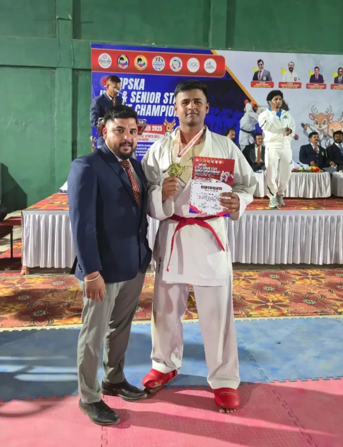 एनएसटी न्यूज, भोपाल: स्कोप ग्लोबल स्किल्स यूनिवर्सिटी, भोपाल के बीपीईएस (BPES) पाठ्यक्रम के छात्र पीयूष पवार ने सीनियर स्टेट कराते चैंपियनशिप 2025–26 में शानदार प्रदर्शन करते हुए स्वर्ण पदक अपने नाम किया। 84 किलोग्राम भार वर्ग में उन्होंने विश्वविद्यालय का प्रतिनिधित्व करते हुए यह उपलब्धि हासिल की। यह राज्य स्तरीय प्रतियोगिता इंदौर (मध्य प्रदेश) में आयोजित की गई थी। फाइनल मुकाबला स्कोप टीम और देवास टीम के बीच खेला गया, जिसमें पीयूष पवार का सामना देवास के हर्ष चौहान से हुआ। तीन मिनट तक चले इस कड़े मुकाबले में दोनों खिलाड़ियों के बीच स्कोर 3–3 से बराबर रहा। इसके बाद सेंशु के आधार पर पीयूष पवार को विजेता घोषित किया गया। स्कोप टीम ने कुल 3 अंकों के साथ जीत दर्ज की, जबकि विपक्षी टीम 2 अंकों पर सिमट गई।