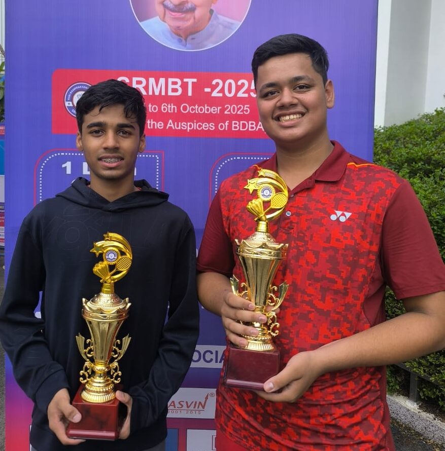 एनएसटी न्यूज, भोपाल। श्री रामप्रकाश स्मृति बैडमिंटन प्रतियोगिता में भोपाल के युवा शटलर शुभ गुप्ता ने शानदार प्रदर्शन करते हुए दो खिताब अपने नाम किए। शुभ ने बालक एकल अंडर-17 में जीत दर्ज की और हनी सेठिया के साथ जोड़ी बनाकर बालक युगल अंडर-19 का खिताब भी जीता। इस तरह उन्होंने टूर्नामेंट में दोहरी सफलता हासिल की। प्रतियोगिता का आयोजन गोविंदपुरा इंडस्ट्रीज एसोसिएशन स्पोर्ट्स कॉम्प्लेक्स में किया गया। बालक अंडर-17 के एकल फाइनल में शुभ गुप्ता ने धैर्य साहू को कड़े मुकाबले में हराया। शुभ ने पहला गेम 25-23 से जीता, लेकिन दूसरा गेम धैर्य ने 21-19 से अपने नाम कर मुकाबले को बराबरी पर ला दिया। निर्णायक गेम में शुभ ने आक्रामक खेल दिखाते हुए 21-16 से जीत दर्ज कर खिताब पर कब्जा जमाया।