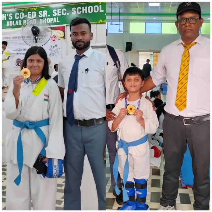 (NST News) भोपाल। राजधानी भोपाल में रविवार को सेंट जोसेफ कॉन्वेंट स्कूल में 15वीं जिला कराते चैंपियनशिप का आयोजन किया गया। इस प्रतियोगिता में भोपाल जिले के 24 से अधिक स्कूलों के छात्र-छात्राओं ने भाग लिया। 6 से 18 साल तक के आयु वर्ग के लगभग 400 प्रतिभागियों ने अपने खेल कौशल का शानदार प्रदर्शन किया। कराते के विभिन्न मुकाबलों में खिलाड़ियों ने पूरे जोश और ऊर्जा के साथ दमखम दिखाया और दर्शकों को रोमांचित कर दिया। इस प्रतियोगिता का मुख्य आकर्षण भोपाल के भाई-बहन नौमिशी दुबे और विश्व दुबे रहे। दोनों ने कराते के कुमिते फार्म में शानदार खेल दिखाकर स्वर्ण पदक हासिल किया। नौमिशी दुबे और विश्व दुबे ने अपनी-अपनी कैटेगरी में 3-3 फाइट जीतकर जीत की राह बनाई। भाई-बहन की इस जोड़ी ने अपनी निडरता और आक्रामक खेल से न केवल प्रतिद्वंद्वियों को पराजित किया बल्कि दर्शकों का दिल भी जीत लिया।