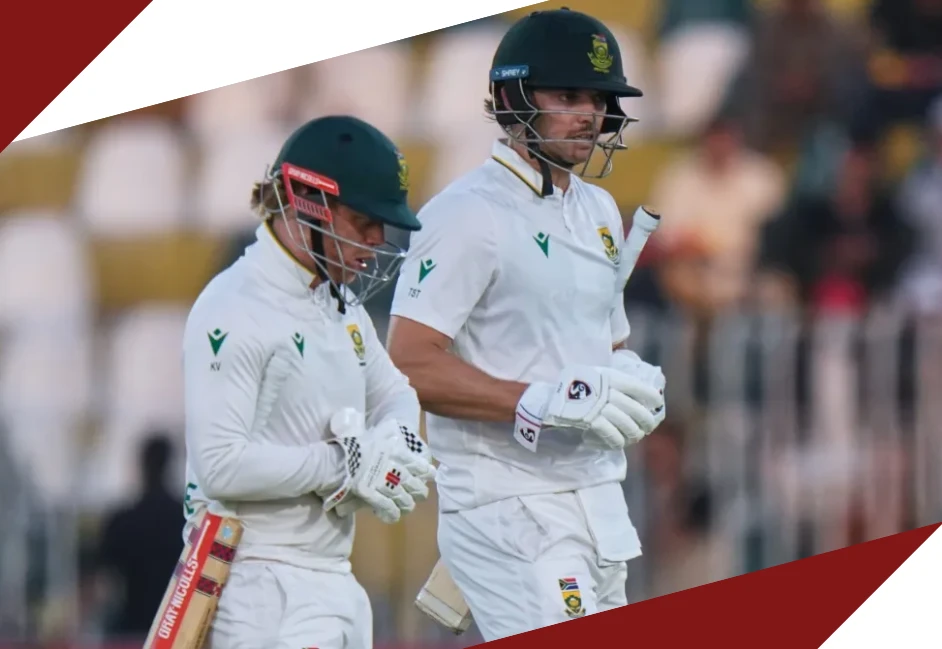 साउथ अफ्रीका की टीम ने पारी घोषित करने से पहले लंबा इंतजार इसलिए किया, क्योंकि ट्रिस्टन स्टब्स शतक की दहलीज पर थे। लेकिन शतक पूरा करने से पहले ही वह आउट हो गए। इसके बाद कप्तान टेम्बा बावुमा ने बिना और देर किए पारी घोषित कर दी। स्टब्स ने 180 गेंदों का सामना करते हुए 94 रन बनाए, जिसमें एक छक्का और नौ चौके शामिल थे। इससे पहले टोनी डी जोरजी 49 रन बनाकर आउट हुए, वे भी अपना अर्धशतक पूरा नहीं कर पाए।