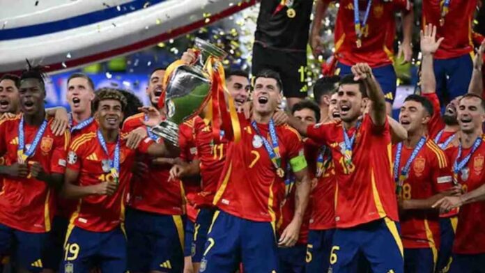 स्पेन ने शानदार प्रदर्शन करते हुए यूरो 2024 अपने नाम कर लिया है. 14 जुलाई (रविवार) को बर्लिन में खेले गए फाइनल मुकाबले में स्पेन ने इंग्लैंड को 2-1 से पराजित किया. स्पेन ने रिकॉर्ड चौथी बार यूरो कप जीता है. वहीं इंग्लैंड को फिर निराशा हाथ लगी.