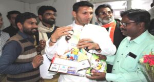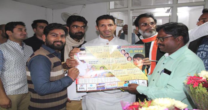 भोपाल। म.प्र के खेलमंत्री जीतू पटवारी को आज यहां उनके निवास पर नेशनल स्पोर्ट्स टाइम्स – 2019 का खेल कलैंडर संपादक इंद्रजीत मौर्य ने भेंट किया। जीतू पटवारी ने खेल कैलेंडर को शानदार बताते हुए कहा कि यह कलैंडर खिलाड़ियो को नई उर्जा देगा। इस मौके पर खेलमंत्री को पत्रिका का जनवरी अंक भी दिया गया। इस अंक में जीतू पटवारी का साक्षात्कार भी छापा गया है।