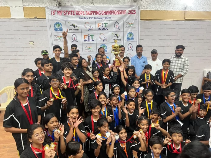 राज्य के विभिन्न जिलों से आए प्रतिभागियों ने कई इवेंट्स में बेहतरीन प्रदर्शन किया। खिलाड़ियों ने शानदार तालमेल, गति और खेल भावना का परिचय देते हुए प्रतियोगिता को रोमांचक बनाया। कार्यक्रम का आयोजन मध्यप्रदेश रोप स्किपिंग एसोसिएशन द्वारा रोप स्किपिंग फेडरेशन ऑफ इंडिया (RSFI) के सहयोग से किया गया। प्रतियोगिता के दौरान खिलाड़ियों में अनुशासन और टीमवर्क देखने को मिला। निर्णायकों ने प्रदर्शन की सराहना करते हुए कहा कि रोप स्किपिंग जैसे खेल न केवल फिटनेस के लिए महत्वपूर्ण हैं, बल्कि बच्चों के मानसिक और शारीरिक विकास में भी सहायक हैं।