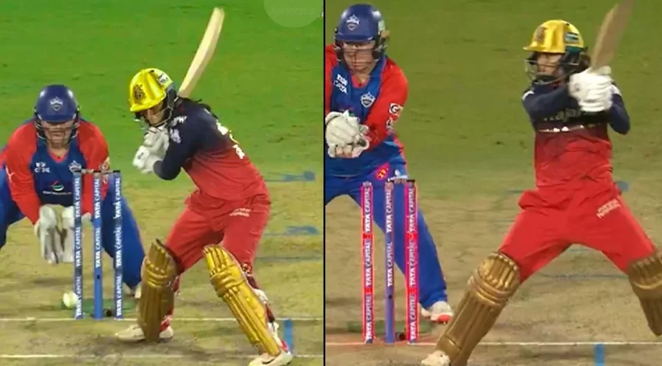 अब आरसीबी को जीत के लिए 3 गेंद पर 4 रन चाहिए थे। राधा यादव ने बैकफुट पर जाकर एक्स्ट्रा कवर के ऊपर से कट शॉट खेला। गेंद बाउंड्री गई, लेकिन तभी गिल्ली स्टंप से गिर गई और लगा राधा हिट विकेट हो गईं। इससे बेपरवाह जीत की खुशी में आरसीबी की कुछ खिलाड़ी मैदान पर पहुंच गईं और जश्न मनाना शुरू कर दिया। डगआउट में मौजूद आरसीबी की कप्तान स्मृति मंधाना ने दोनों हाथ उठाकर पूछा क्या हुआ?