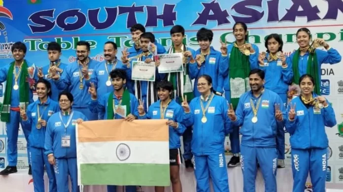 काठमांडू: भारत ने दक्षिण एशियाई युवा टेबल टेनिस चैंपियनशिप में शानदार प्रदर्शन करते हुए 13 स्वर्ण और तीन रजत पदक जीते। इस साल की युवा एशियाई चैंपियनशिप इस की क्वालीफिकेशन प्रतियोगिता में रविवार को विभिन्न श्रेणियों में भारतीय खिलाड़ियों ने दबदबा बनाया। भारतीय टीम ने अंडर-19 लड़कियों, अंडर-15 लड़कों और अंडर-15 लड़कियों के वर्ग में तीन स्वर्ण पदक जीते। भारतीय खिलाड़ियों ने अंडर-19 और अंडर-15 युगल और मिश्रित युगल स्पर्धाओं सहित सभी छह स्वर्ण भी पदक जीते। इसके अलावा भारत ने अंडर-19 लड़कों और लड़कियों के एकल मुकाबलों में चार स्वर्ण पदक हासिल किए।