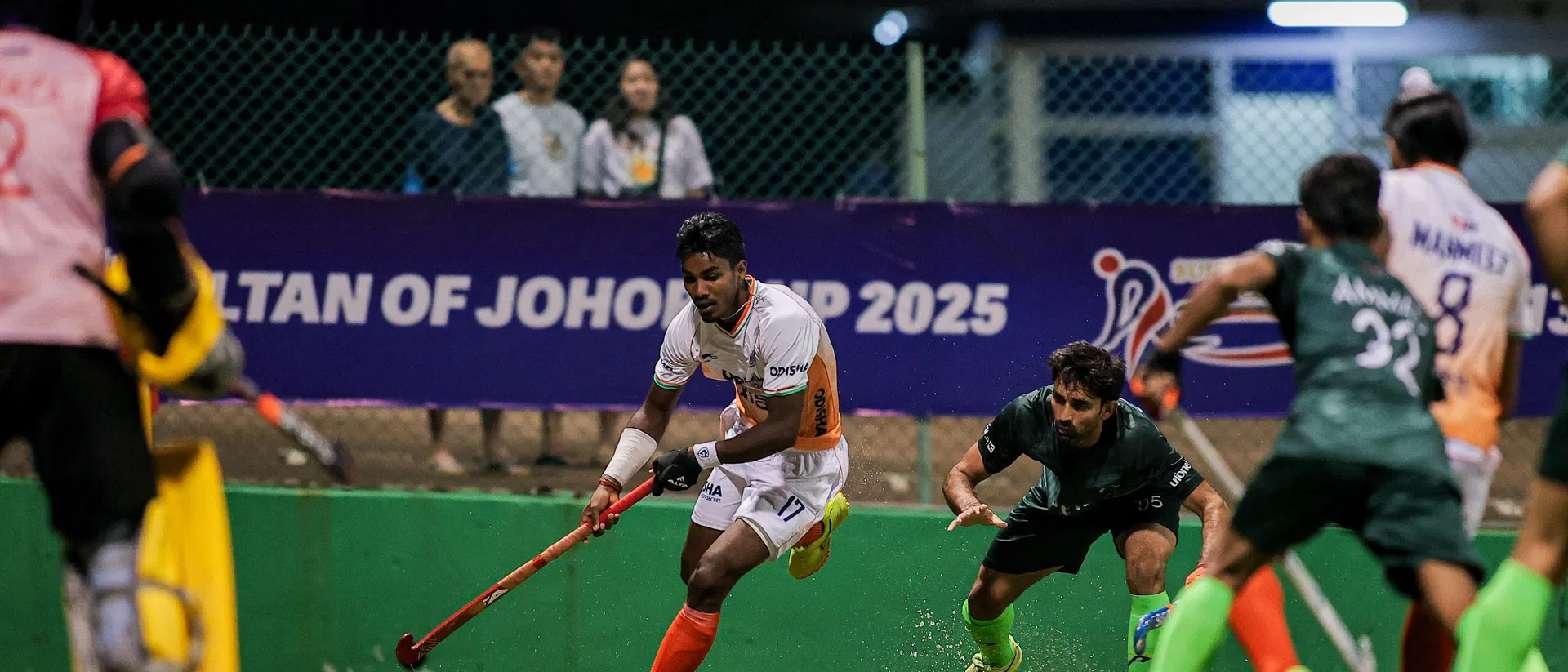 जोहर बाहरु (मलेशिया). मलेशिया के जोहर बाहरु में खेले जा रहे सुल्तान ऑफ जोहर कप अंडर-21 हॉकी टूर्नामेंट में मंगलवार को भारत और पाकिस्तान के बीच मुकाबला 3-3 की बराबरी पर खत्म हुआ। मैच का नतीजा भले ही तय न हो पाया, लेकिन मैदान पर दोनों देशों के खिलाड़ियों का एक-दूसरे से हाथ मिलाना चर्चा का विषय बन गया। राजनीतिक तनाव के बीच यह दृश्य खेल भावना की मिसाल साबित हुआ।