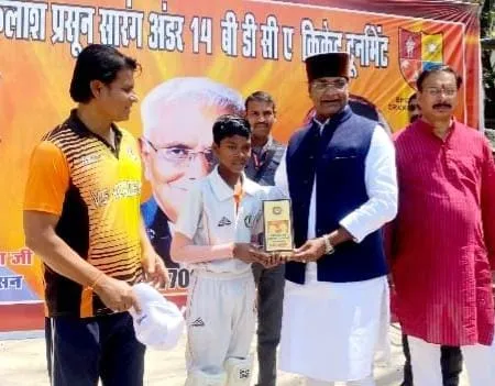 भोपाल। विधायक ट्रॉफी अंडर-12 के तहत आज विश्वास सारंग क्रिकेट अकादमी और यंग स्टार बी चेम्प के बीच रोमांचक मुकाबला खेला गया। टॉस जीतकर यंग स्टार बी चेम्प ने पहले क्षेत्ररक्षण का फैसला किया। पहले बल्लेबाजी करते हुए विश्वास सारंग क्रिकेट अकादमी ने 30 ओवर में 1 विकेट खोकर 246 रन बनाए। कप्तान मेदांत उइके ने 90 गेंद में 21 चौके और 2 छक्कों की मदद से शानदार 116 रन बनाए। कबीर अग्रवाल ने 56 और ओम रघुवंशी ने 30 रन का योगदान दिया। यंग स्टार की तरफ से आरव ने 48 रन देकर एक विकेट लिया।
