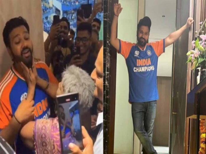 टीम इंडिया के कप्तान रोहित शर्मा वानखेड़े स्टेडियम में जब अपनी मां और पिता से मिलने पहुंचे, तो उनकी मां ने उन पर पुच्चियों की बारिश कर दी, बिल्कुल वैसे ही जैसे हर भारतीय मां अपने बच्चे की कामयाबी पर करती है और रोहित शर्मा का रिऐक्शन भी वैसा ही था, जैसा हर भारतीय बेटे का होता है। रोहित शरमा रहे थे और अपनी अपनी शरम को उसी अंदाज में छुपा रहे थे, जैसे भारतीय बेटे करते हैं। रोहित की मां ने पहले उनके दोनों गाल चूमे और फिर माथा भी चूम लिया और ऐसा वो करें भी क्यों ना, टीम इंडिया को वर्ल्ड चैंपियन बनाकर उनका बेटा लौटा था। यह वीडियो सोशल मीडिया पर बहुत ज्यादा वायरल हो गया है। टीम इंडिया ने 29 जून को आईसीसी टी20 वर्ल्ड कप 2024 खिताब अपने नाम किया था। बारबाडोस में साउथ अफ्रीका को सात रनों से हराकर टीम इंडिया ने खिताब जीता था।