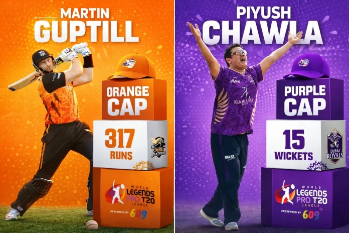 नई दिल्ली: वर्ल्ड लीजेंड्स प्रो टी20 लीग 2026 के फाइनल में बुधवार (4 फरवरी) को दुबई रॉयल्स ने पुणे पैंथर्स को 8 विकेट से हराकर खिताब अपने नाम किया। शिखर धवन की कप्तानी में दुबई रॉयल्स ने गोवा के स्पोर्ट्स क्रिकेट स्टेडियम में 195 रनों के लक्ष्य को आसानी से हासिल कर लिया। धवन ने टूर्नामेंट में शानदार प्रदर्शन करते हुए 6 पारियों में कुल 267 रन बनाए। पुणे पैंथर्स के मार्टिन गप्टिल ने सबसे ज्यादा रन बनाए। टूर्नामेंट के टॉप-5 बल्लेबाजों में भारत के पूर्व क्रिकेटर चेतेश्वर पुजारा भी शामिल हैं। वह गुरुग्राम थंडर्स का हिस्सा थे। वर्ल्ड लीजेंड्स प्रो टी20 लीग 2026 में सबसे ज्यादा विकेट दिल्ली वॉरियर्स के पीयूष चावला ने लिया। दुबई रॉयल्स के सुबोथ भाटी ने दूसरे नंबर पर रहे। राजस्थान लॉयंस के शादाब जकाती तीसरे नंबर पर रहे। पुणे पैंथर्स के ड्वेन ब्रावो चौथे नंबर पर हैं। राजस्थान किंग्स के बिपुल शर्मा तीसरे नंबर पर हैं।